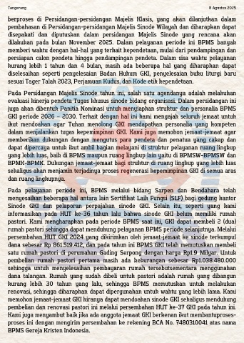 GKI periode 2026 – 2030. Terkait dengan hal ini kami mengajak seluruh jemaat untuk