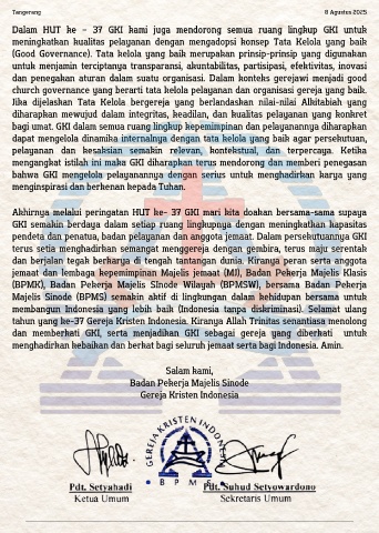 Dalam HUT ke – 37 GKI kami juga mendorong semua ruang lingkup GKI untuk