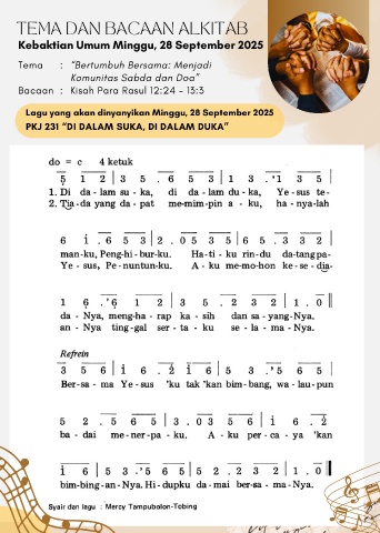 Lagu yang akan dinyanyikan Minggu, 28 September 2025