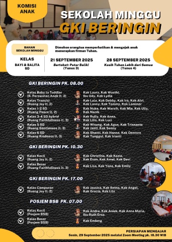 Senin, 29 September 2025 melalui Zoom Meeting pk. 18.30 WIB