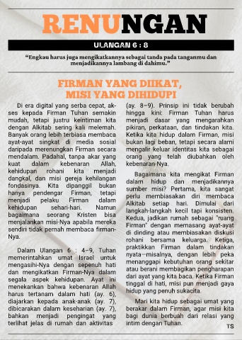 dibicarakan dalam keseharian (ay. 7), berakar dalam Firman, agar misi kita