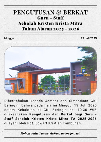 Diberitahukan kepada Jemaat dan Simpatisan GKI