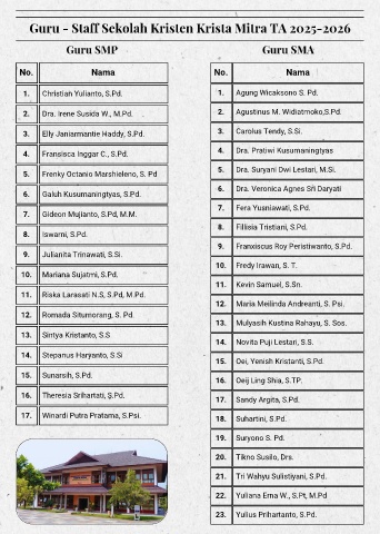 Guru - Staff Sekolah Kristen Krista Mitra TA 2025-2026