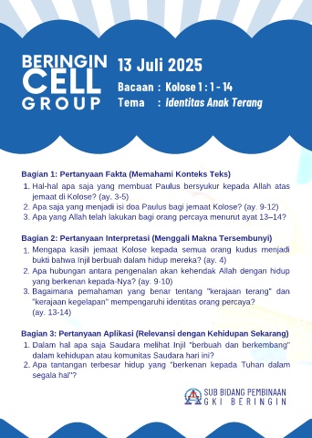 CELL Bacaan : Kolose 1 : 1 - 14