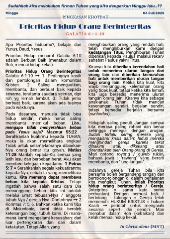 Roh, menuai hidup kekal). Kiranya kita diberikan kerendahan hati