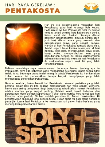 terlalu tahu. Beberapa orang malah mengira bahwa Pentakosta itu hari kenaikan