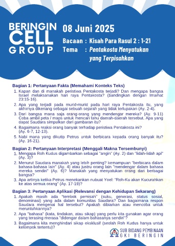 CELL Bacaan : Kisah Para Rasul 2 : 1-21