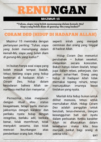 Mazmur 15 membuka dengan seperti inilah yang menjadi