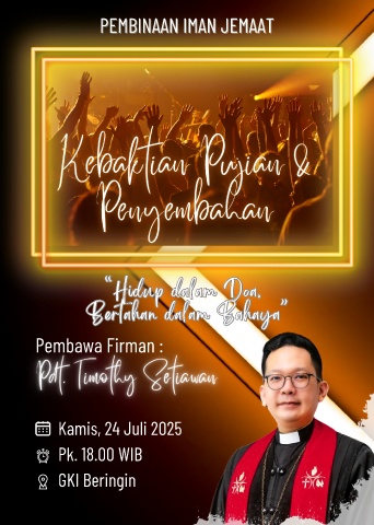 PEMBINAAN IMAN JEMAAT PEMBINAAN IMAN JEMAAT l a m d a D o a , p H “ “Hidup dalam Doa, u d i B e r t a h a n d a l a m B a h a y a ” Bertahan dalam Bahaya” Pembawa Firman : Kamis, 24 Juli 2025 Pk. 18.00 WIB GKI Beringin