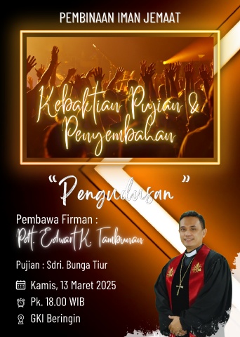 PEMBINAAN IMAN JEMAAT PEMBINAAN IMAN JEMAAT d u g u ” n s a n “ “Pengudusan ” e P Pembawa Firman : Pujian : Sdri. Bunga Tiur Kamis, 13 Maret 2025 Pk. 18.00 WIB GKI Beringin