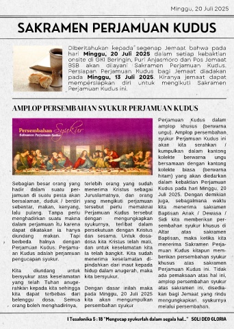 hari Minggu, 20 Juli 2025 dalam setiap kebaktian