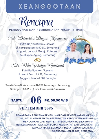 Pernikahan dilaksanakan di GKI Peterongan Semarang