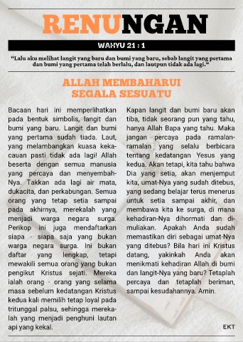 bumi yang baru. Langit dan bumi hanya Allah Bapa yang tahu. Maka
