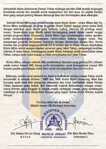 bersekolah di sekolah Kristen : SMP dan SMA Krista Mitra Semarang. Mari kita
