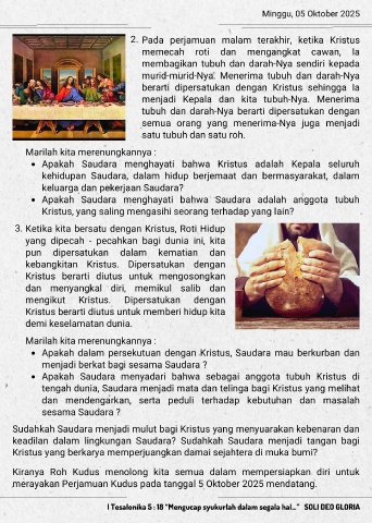 merayakan Perjamuan Kudus pada tanggal 5 Oktober 2025 mendatang.