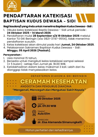 3. Kelas katekisasi akan dimulai pada hari Jumat, 24 Oktober 2025.