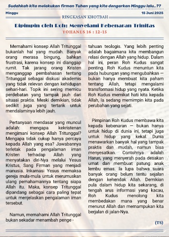 D i p i m p i n o l e h R o h : M e n y e l a m i K e b e n a r a n T r i n i t a s