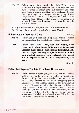 Pdt. HY : Dalam nama Bapa, Anak, dan Roh Kudus, saya