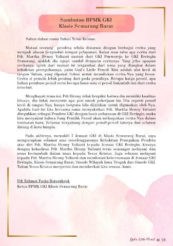 Pada akhirnya, mewakili 7 Jemaat GKI di Klasis Semarang Barat, saya
