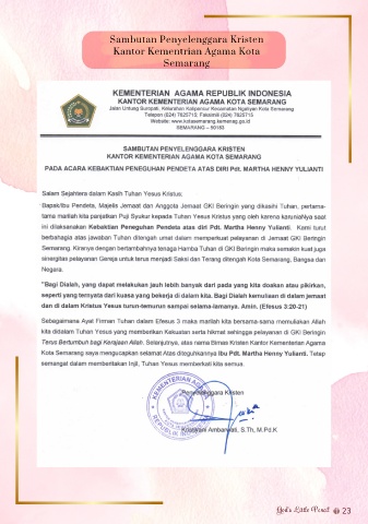 Sambutan Penyelenggara Kristen Kantor Kementrian Agama Kota Semarang God’s Little Pencil 23