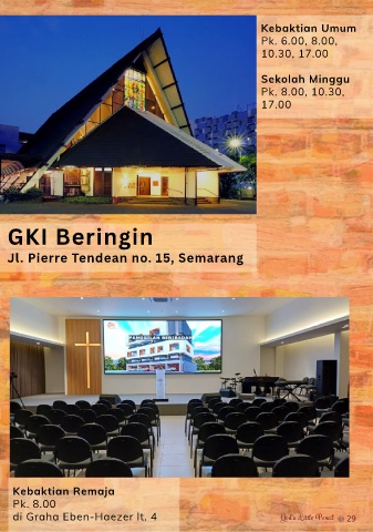 Kebaktian Umum Pk. 6.00, 8.00, 10.30, 17.00 Sekolah Minggu Pk. 8.00, 10.30, 17.00 GKI Beringin Jl. Pierre Tendean no. 15, Semarang Kebaktian Remaja Pk. 8.00 di Graha Eben-Haezer lt. 4 God’s Little Pencil 29