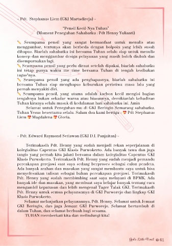 GKI Beringin, dan juga Jemaat GKI Purworejo. Selamat bertumbuh di