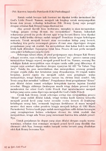 menyakitkan, tetapi ada Yesus yang menemani karena kita adalah pensil-