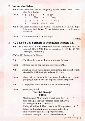 Pdt. Tim : Pada hari ini kita bersyukur karena tepat pada hari ini