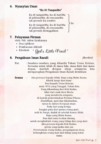 Semua : Aku percaya kepada Allah, Bapa yang Maha Kuasa,