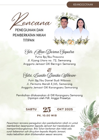 Pernikahan dilaksanakan di GKI Karangsaru Semarang