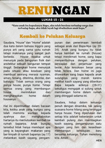 Saudara, “House” dan “Home” adalah punan dan penerimaan kembali