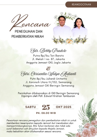 Pernikahan dilaksanakan di GKI Beringin Semarang