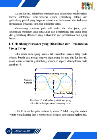 1. Gelombang Stasioner yang Dihasilkan dari Pemantulan Ujung Tetap Sumber: Buku fisika kelas XI Gambar 16. Gelombang stasioner yang dihasilkan dari pemantulan ujung tetap 29 BAHAN AJAR