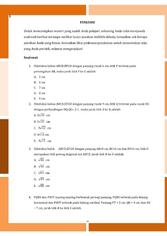 2. Diketahui kubus ABCD.EFGH dengan panjang rusuk 9 cm, titik Q terletak pada rusuk HG