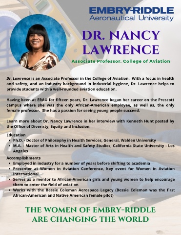 Dr. Lawrence is an Associate Professor in the College of Aviation. With a focus in health