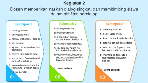 Dosen memberikan naskah dialog singkat, dan membimbing siswa