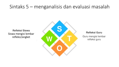 Sintaks 5 – menganalisis dan evaluasi masalah S Refleksi Siswa Siswa mengisi lembar Refleksi Guru refleksi/angket T Guru mengisi lembar . W refleksi guru O