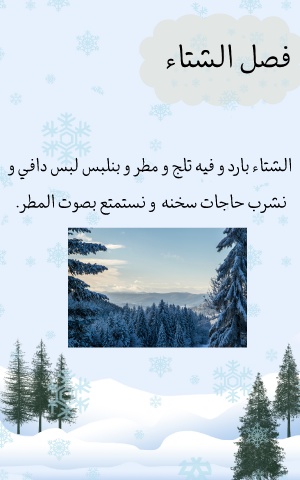ءﺎﺘﺸﻟا ﻞﺼﻓ و ﻲﻓاد ﺲﺒﻟ ﺲﺒﻠﻨﺑ و ﺮﻄﻣ و ﺞﻠﺗ ﻪﻴﻓ و درﺎﺑ ءﺎﺘﺸﻟا .ﺮﻄﻤﻟا تﻮﺼﺑ ﻊﺘﻤﺘﺴﻧ و ﻪﻨﺨﺳ تﺎﺟﺎﺣ بﺮﺸﻧ