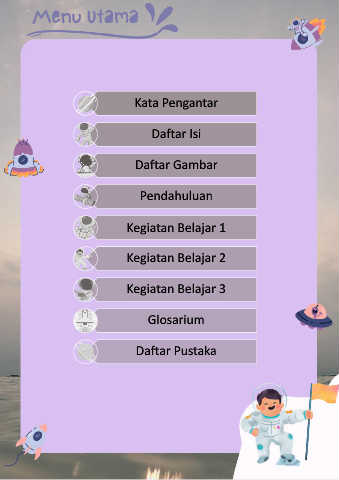 Kata Pengantar Daftar Isi Daftar Gambar Pendahuluan Kegiatan Belajar 1 Kegiatan Belajar 2 Kegiatan Belajar 3 Glosarium Daftar Pustaka BUKU SAKU DIGITAL IPA KELAS VII SISTEM TATA SURYA i