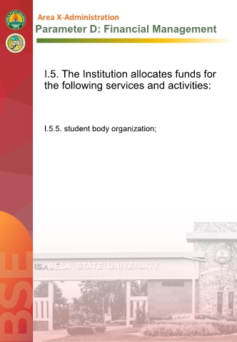 Parameter D: Financial Management I.5. The Institution allocates funds for the following services and activities: I.5.5. student body organization;