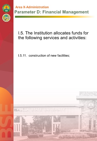 Parameter D: Financial Management I.5. The Institution allocates funds for the following services and activities: I.5.11. construction of new facilities;