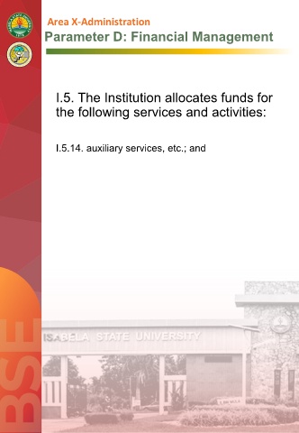 Parameter D: Financial Management I.5. The Institution allocates funds for the following services and activities: I.5.14. auxiliary services, etc.; and