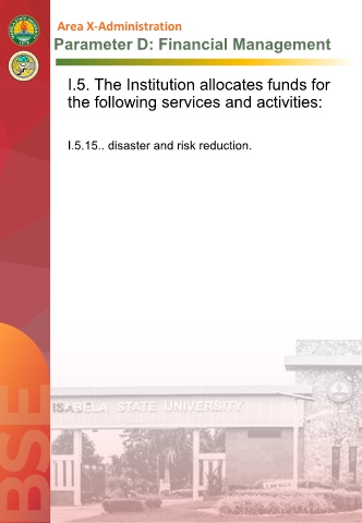 Parameter D: Financial Management I.5. The Institution allocates funds for the following services and activities: I.5.15.. disaster and risk reduction.