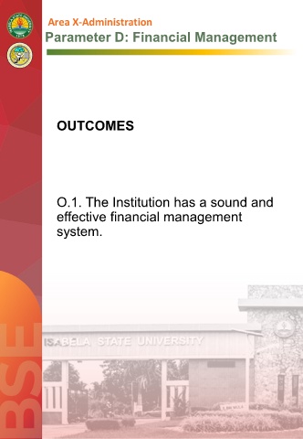 Parameter D: Financial Management OUTCOMES O.1. The Institution has a sound and effective financial management system.