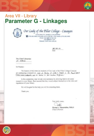 Area VII - Library Parameter G - Linkages