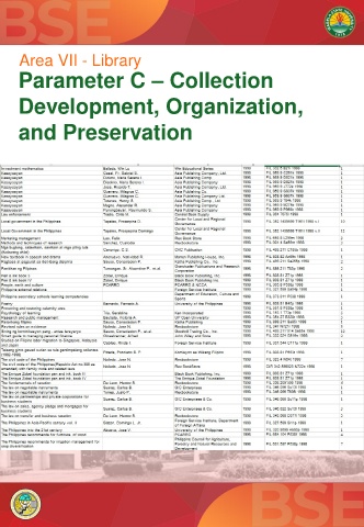 Area VII - Library Parameter C – Collection Development, Organization, and Preservation
