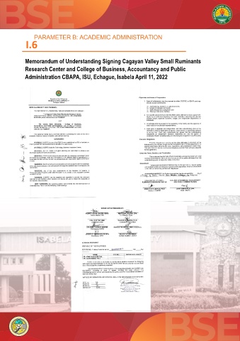 I.6 Memorandum of Understanding Signing Cagayan Valley Small Ruminants Research Center and College of Business, Accountancy and Public Administration CBAPA, ISU, Echague, Isabela April 11, 2022
