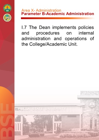 Area X- Administration Parameter B-Academic Administration I.7 The Dean implements policies and procedures on internal administration and operations of the College/Academic Unit.