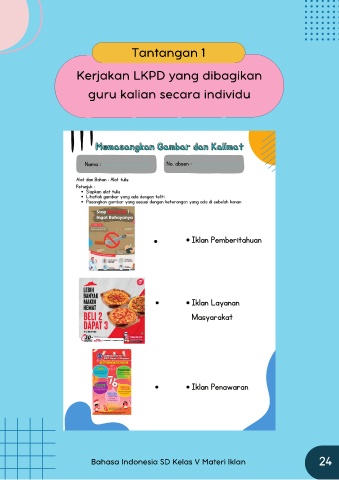 Tantangan 1 Kerjakan LKPD yang dibagikan guru kalian secara individu Bahasa Indonesia SD Kelas V Materi Iklan 24