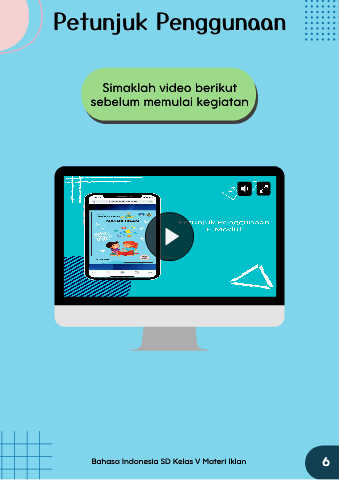 Petunjuk Penggunaan Simaklah video berikut sebelum memulai kegiatan Bahasa Indonesia SD Kelas V Materi Iklan 6